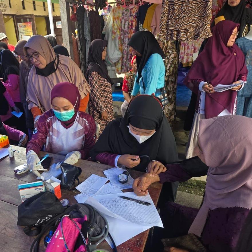 Kegiatan tersebut bertujuan untuk meningkatkan kesadaran masyarakat terhadap pentingnya pemeriksaan kesehatan secara rutin, sekaligus mendekatkan layanan kesehatan dasar kepada masyarakat, khususnya para pedagang dan pengunjung pasar.
